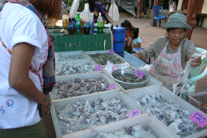 サコンナコーンの市場 (イカ一袋 約500円)